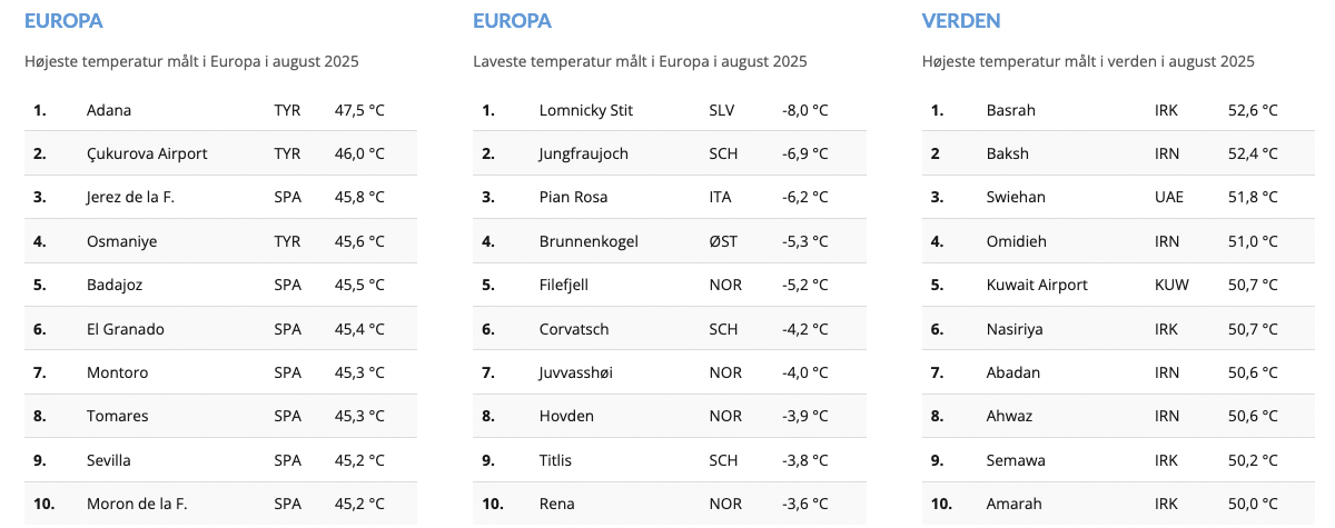 I disse lande målte man den højeste temperatur i august nogensinde:
