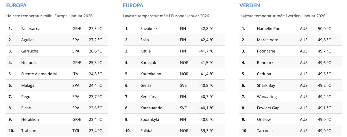 I disse lande målte man den højeste temperatur i januar nogensinde: