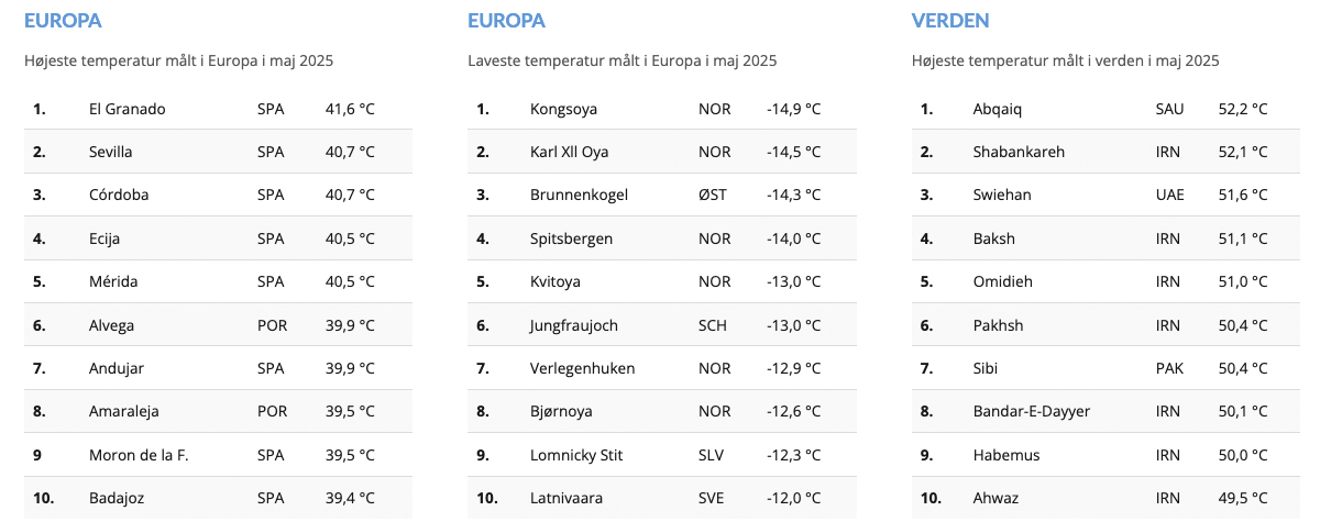 Den højeste temperatur i verden i maj 2025 blev målt i Abqaiq i Saudi Arabien og lød på hele 52,2 °C.