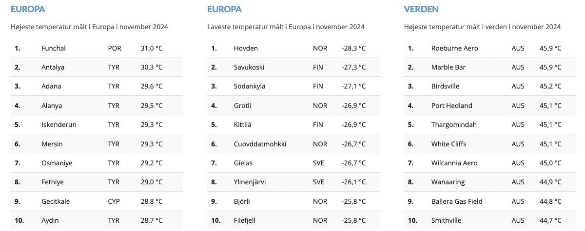 I disse lande målte man den højeste nattemperatur i november nogensinde: